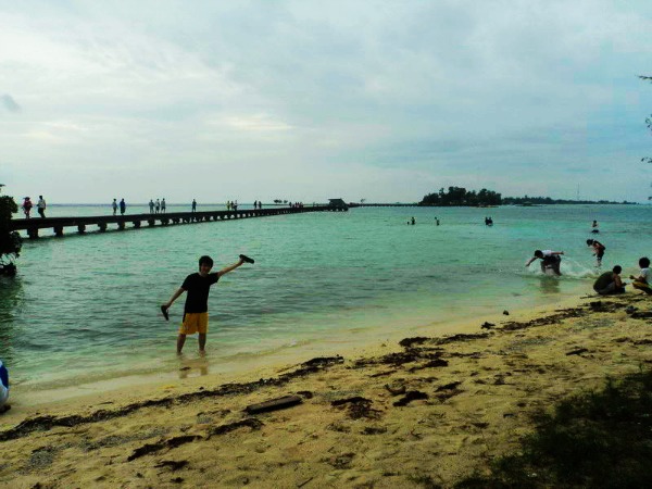 Namun memang indah pantai di pulau Tidung ini, air nya masih bening sehingga terlihat isi dalam air pantai tersebut, sayang saya hanya bisa melihat dari atas jembatan saja :(